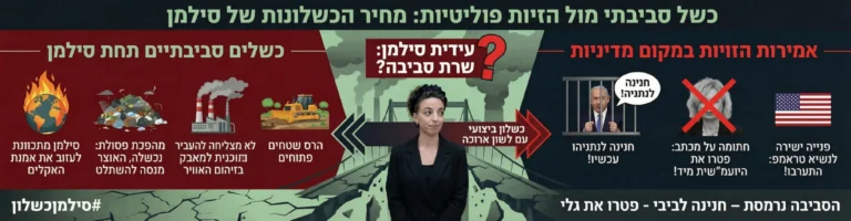 בעבודה שבחנה את תפקודה של עידית סילמן כשרה להגנת הסביבה, עולה דפוס מטריד: ריבוי כשלי ליבה בתחומי אחריות מובהקים של המשרד, לצד נראות ציבורית גבוהה במאבקים פוליטיים שאינם סביבתיים.